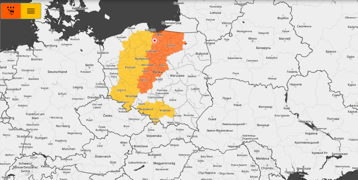 Przez Centralne Biuro Prognoz Meteorologicznych w Warszawie, zostało wydane ostrzeżenie meteorologiczne dla powiatów naszego województwa.