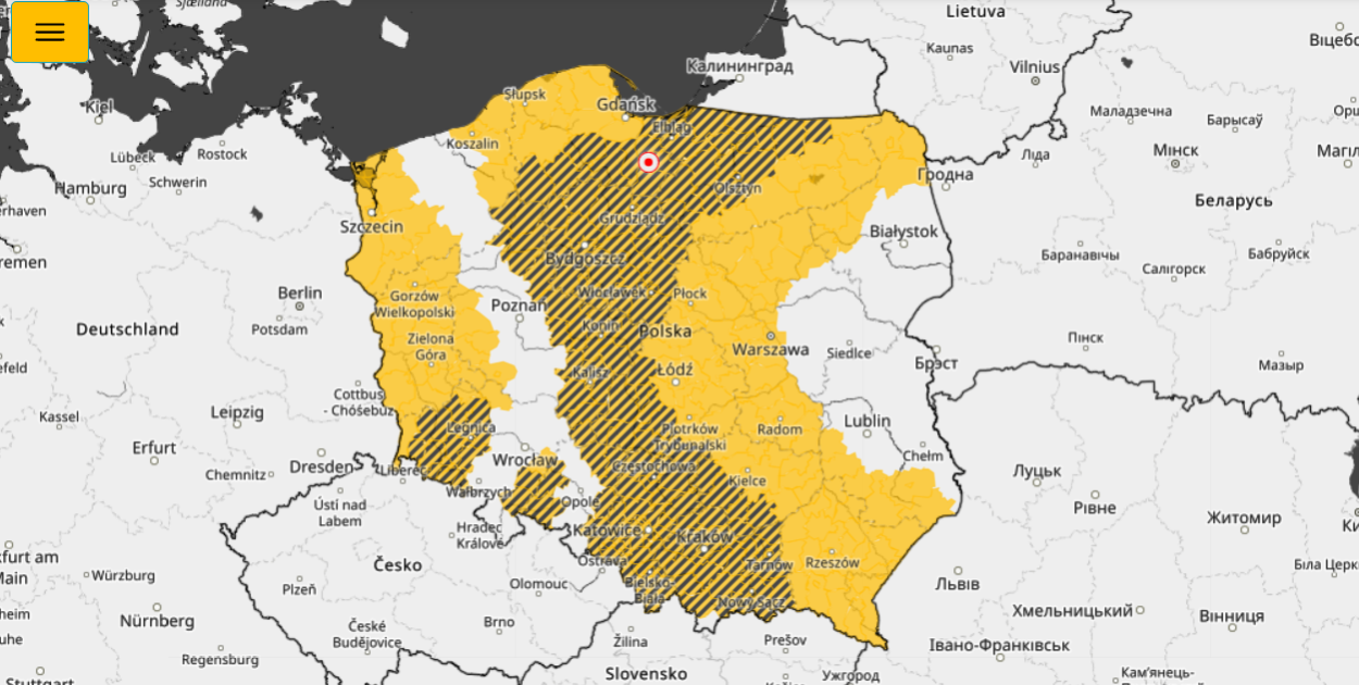 Przez Centralne Biuro Prognoz Meteorologicznych w Warszawie, zostało wydane ostrzeżenie meteorologiczne dla powiatów naszego województwa.