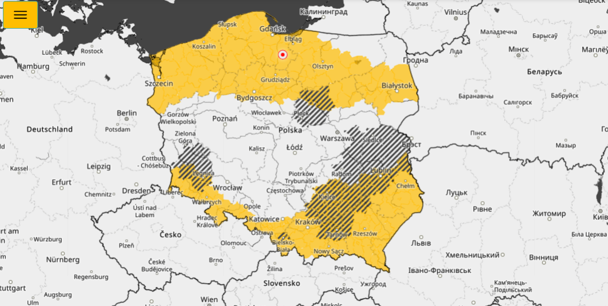 Przez Centralne Biuro Prognoz Meteorologicznych w Warszawie, zostało wydane ostrzeżenie meteorologiczne dla powiatów naszego województwa.