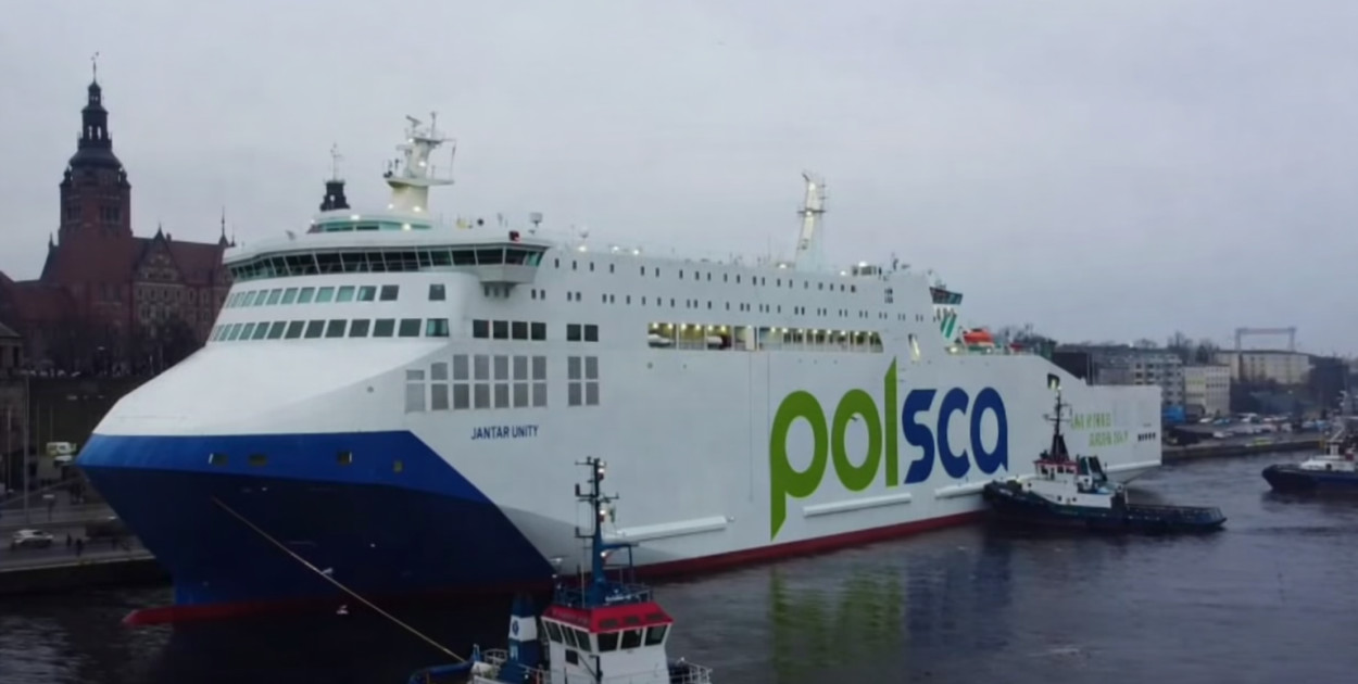 Prom Jantar Unity zacumował przy Wałach Chrobrego w Szczecinie. Wybudowany w stoczni w Gdańsku, to obecnie najnowocześniejsza jednostka pasażersko-samochodowa (typu Ro-Pax) operująca na Bałtyku. Choć formalnie należy do spółki zarejestrowanej na Cyprze, jego powstanie jest bezpośrednim efektem programu budowy polskich promów POLSCA Baltic Ferries, przyjętego przez rząd Prawa i Sprawiedliwości i realizowanego dla polskich armatorów.