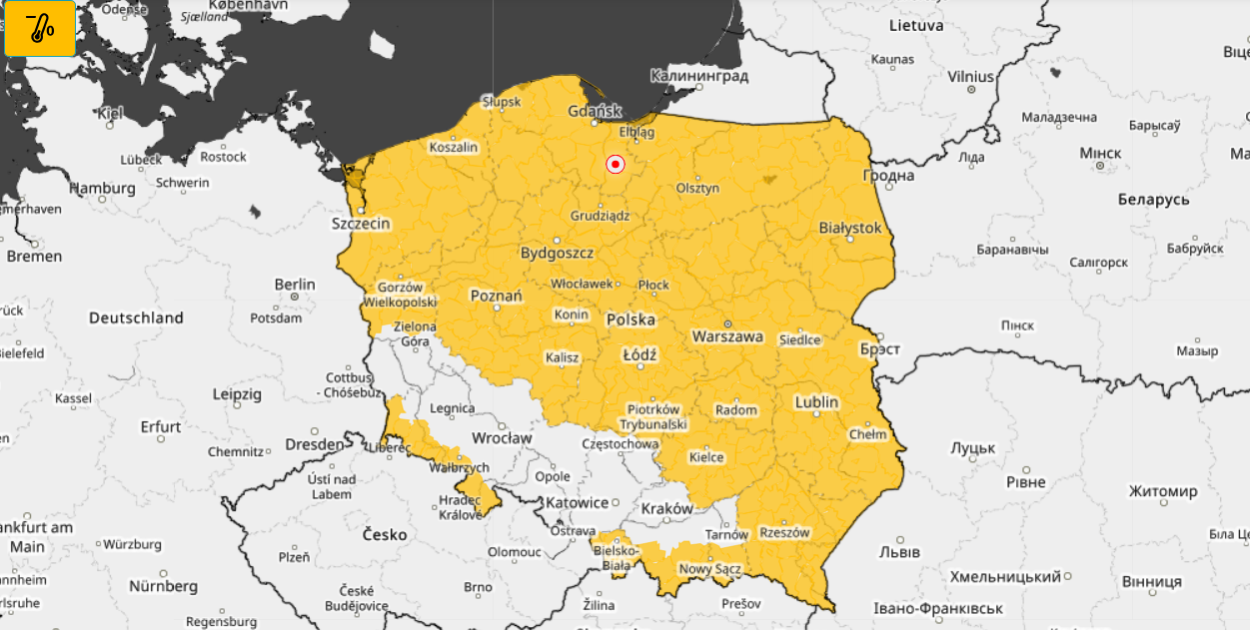 Przez Centralne Biuro Prognoz Meteorologicznych w Warszawie, zostało wydane ostrzeżenie meteorologiczne dla powiatów naszego województwa.