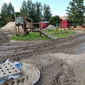 Patrząc na organizację, można przypuszczać, iż wykonawca uzyskał zgodę od urzędu na przekształcenie placu zabaw w bazę. Co zresztą sprawdzimy w urzędzie.