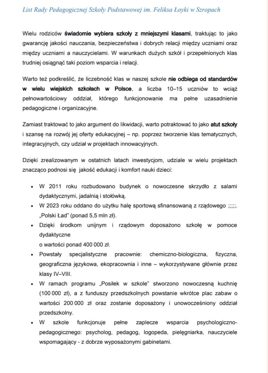 Czy Szropy są pierwszym krokiem w kierunku wygaszania małych placówek edukacyjnych w naszym regionie?