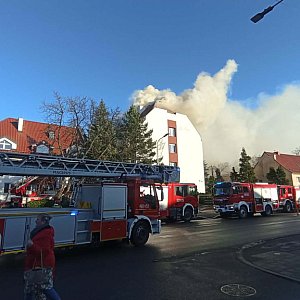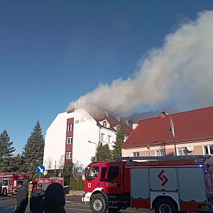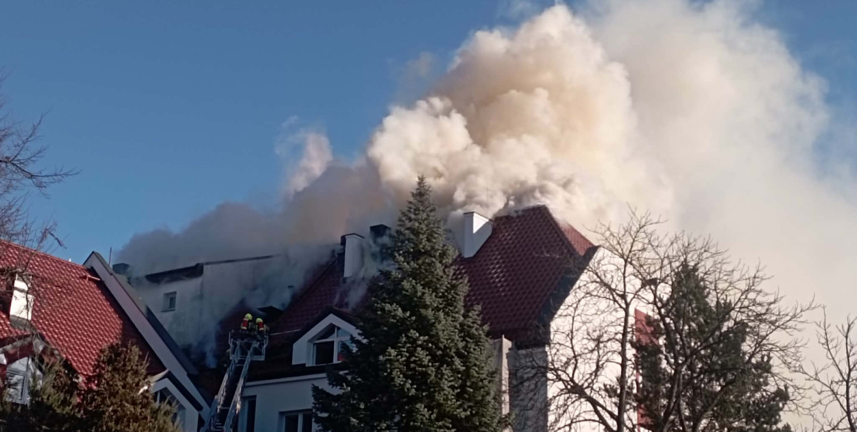W Sztumie doszło do pożaru nowo wyremontowanego budynku Zakładu Ubezpieczeń Społecznych. Ogień objął poddasze obiektu. Na miejscu trwa intensywna i trudna akcja gaśnicza prowadzona przez strażaków.